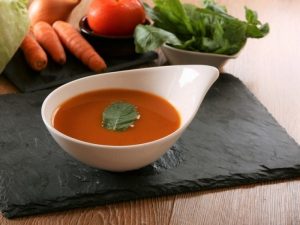 Sugestie:rosiile pot si fierte separat ,fara apa si apoi trecute prin sita ,pentru a se retine pielita si samburii.Compozitia obtinuta se amesteca cu supa de zarzavat strecurata si cu fideaua fiarta separat.